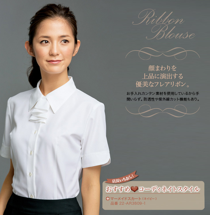 [通年]フレアリボンが上品なブラウス[半袖](22-AR1647)