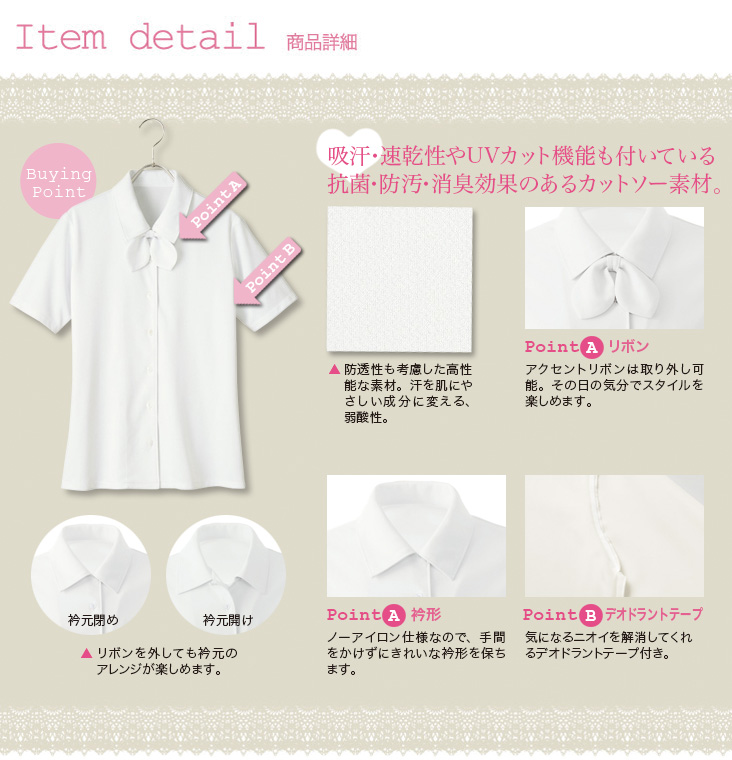 【在庫限り】[通年]シワになりにくいカットソー素材・リボン付きブラウス[半袖](22-AR1672)