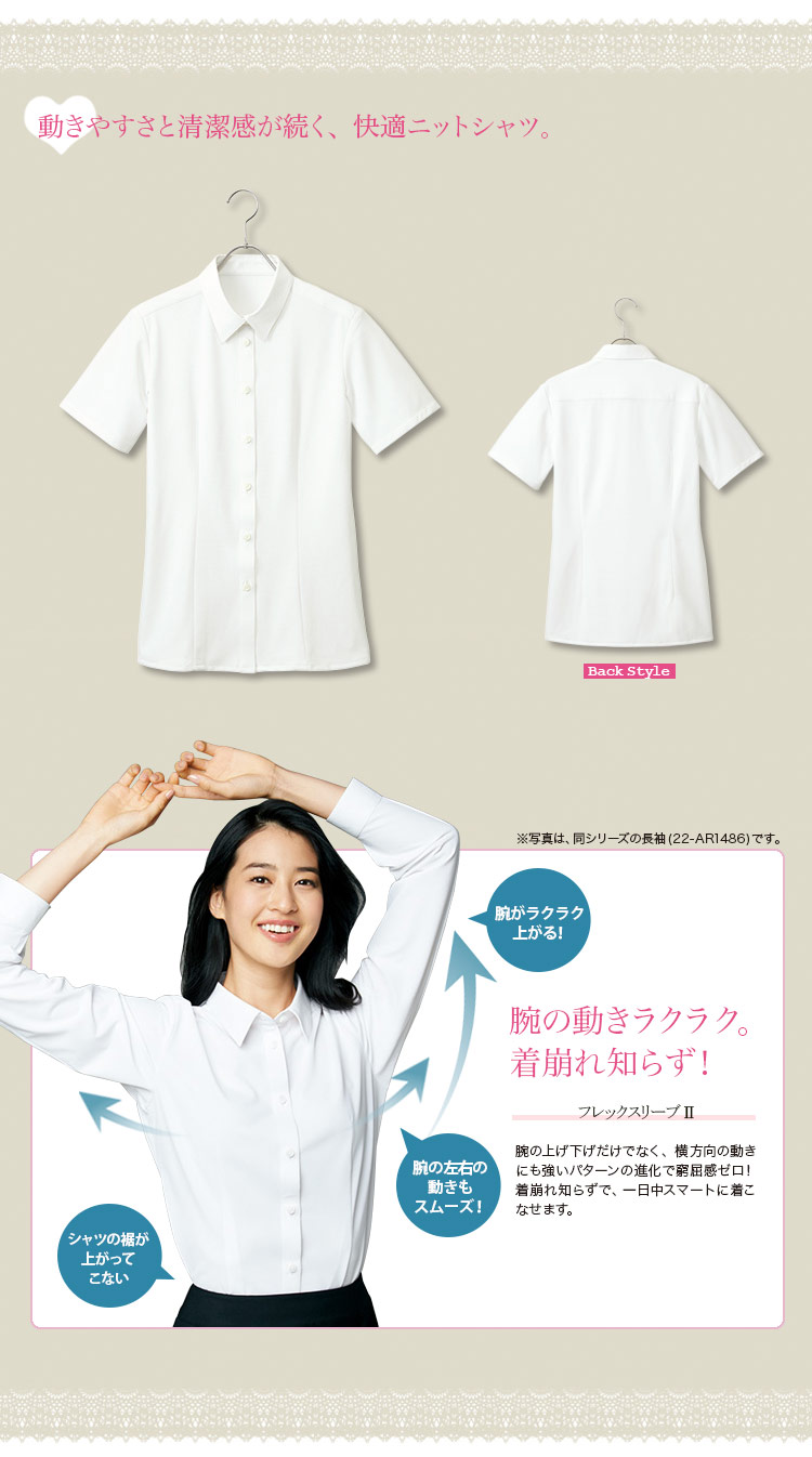 [通年]ニット素材で動きやすい!吸汗速乾、抗菌・消臭にも優れた半袖シャツ(22-AR1686)