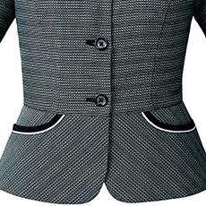 華を添えるリボンブローチ用のタブが襟下についています。(左右)