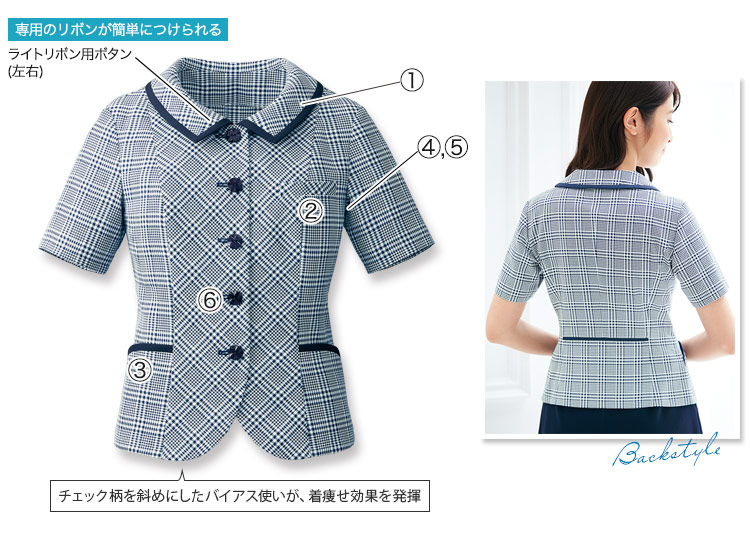 リボンブローチ用のタブが襟下についています。(左右)
