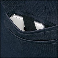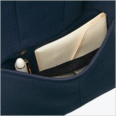 左ポケット内はホルダーテープ付きで、ペンなどを立てて安定収納ができます。