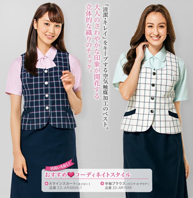 【在庫限り】[春夏用]格子柄ベスト(22-AR2658)