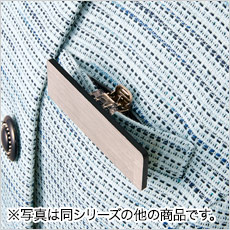 さざ波のように輝く、明るく涼やかなツイードボーダーのベスト。前端のパイピングや、腰ポケットのビット飾りできりっとした華やかさを演出。背ベルトのネイビー配色もアクセントになっています。
