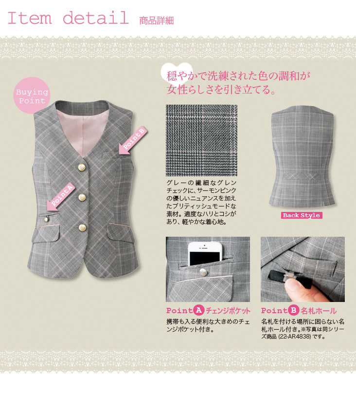 【在庫限り】[通年]チェック柄ベスト(22-AR2838)