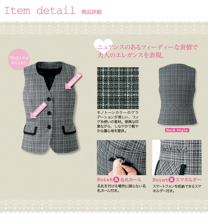 【在庫限り】[通年]エレガントチェックベスト(22-AR2844)