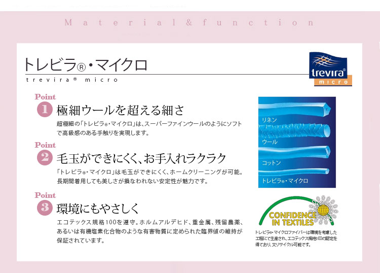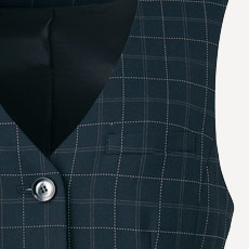 マイクロファイバー「トレビラ®・マイクロ」をミックスしたファインウールタッチの素材です。ペアラインとステッチラインによるクロスオーバーチェックは 顔映りが良く、高感度をバックアップします。