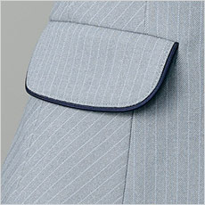 ネイビーのパイピングがアクセントの左右フラップポケット。