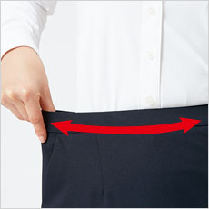 - ゴムinカーブベルト、帯電防止トリコット裏地、制電テープ、ファスナー左脇あき、ポケット左右