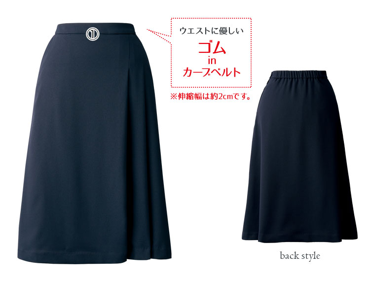- ゴムinカーブベルト、帯電防止トリコット裏地、制電テープ、ファスナー左脇あき、ポケット左右