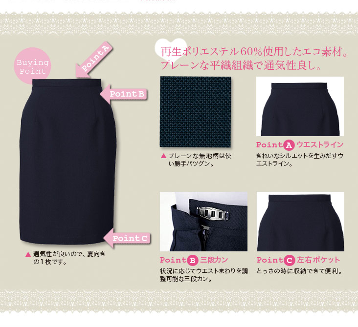 [春夏用]スタイリングの幅が広がるネイビーの無地柄・タイトスカート(22-AR3607R)