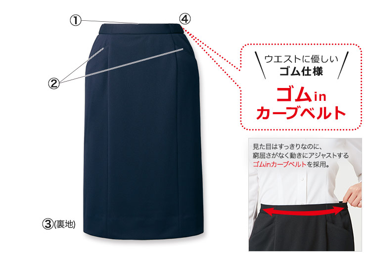 ブラウスのはみ出しを防ぐため、ウエストの内側にすべり止めテープ付き。