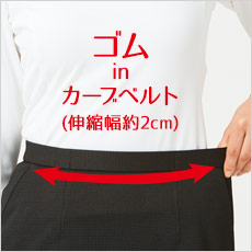 見た目はすっきりなのに、窮屈さがなく動きにアジャストするゴムinカーブベルト仕様(伸縮幅は約2cm)。