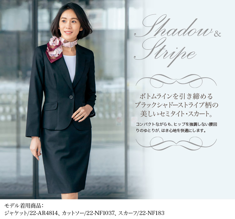 【在庫限り】[秋冬用]クールなシャドーストライプ柄のセミタイトスカート<53cm>(22-AR3814)