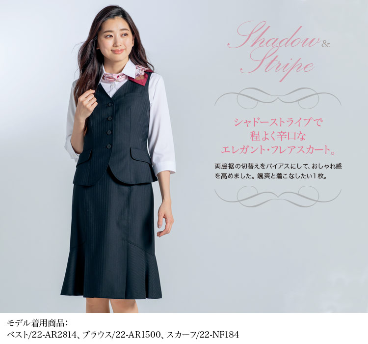 【在庫限り】[秋冬用]裾の切り替えがスタイリッシュなシャドーストライプのフレアスカート<55cm>(22-AR3815)