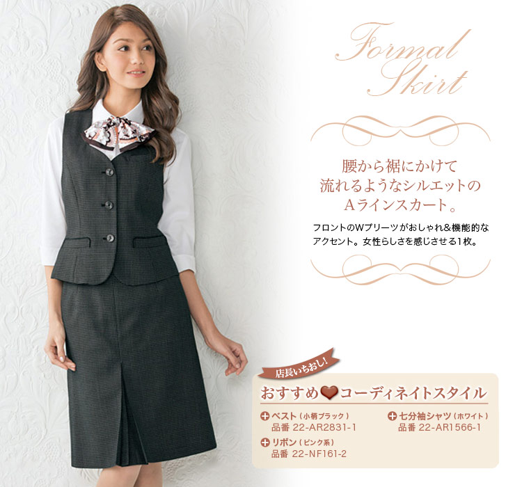 【在庫限り】[通年]WプリーツがおしゃれなAラインスカート(22-AR3831)