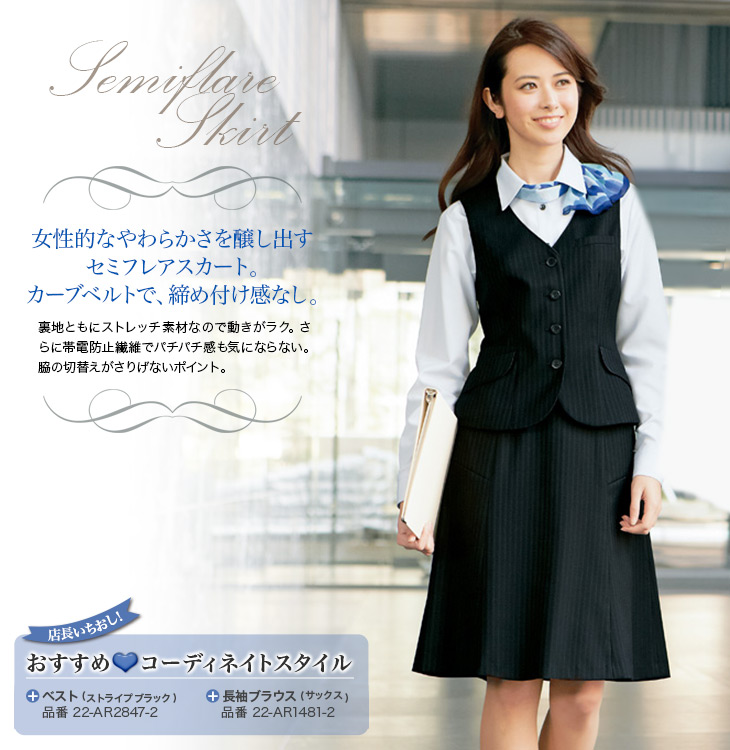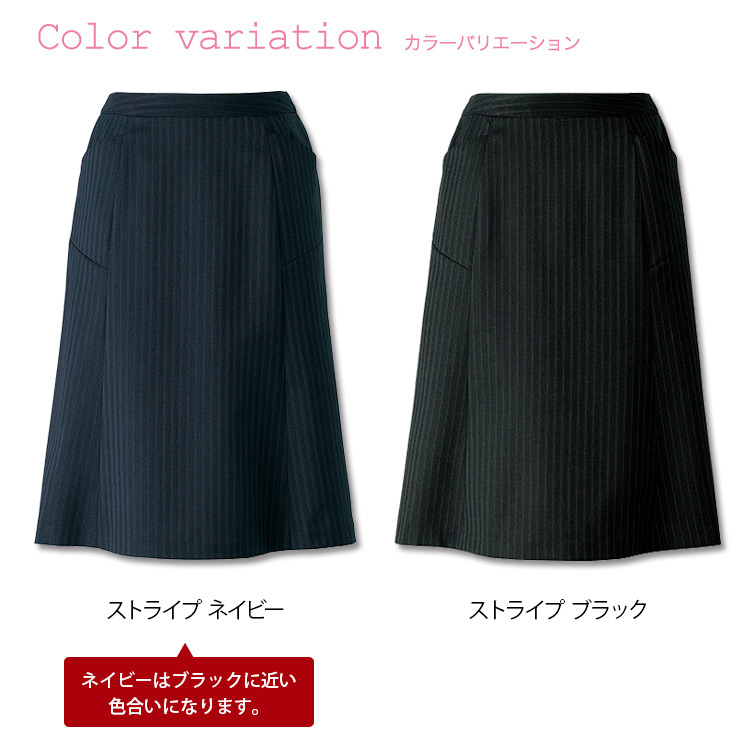 【在庫限り】[通年]<防シワ商品>ストレッチ素材で動けるストライプ地のセミフレアスカート(22-AR3848)