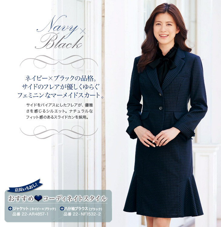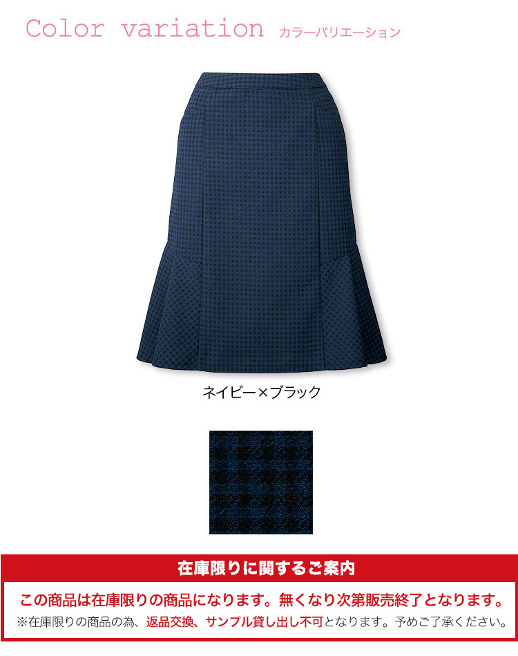 【在庫限り】[通年]ネイビー×ブラックのチェック柄。サイドのフレアがフェミニンなマーメイドスカート(22-AR3857)