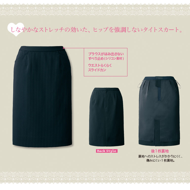【在庫限り】[通年]ヒップを強調せずに美シルエットのピンストライプ・タイトスカート(22-AR3862)