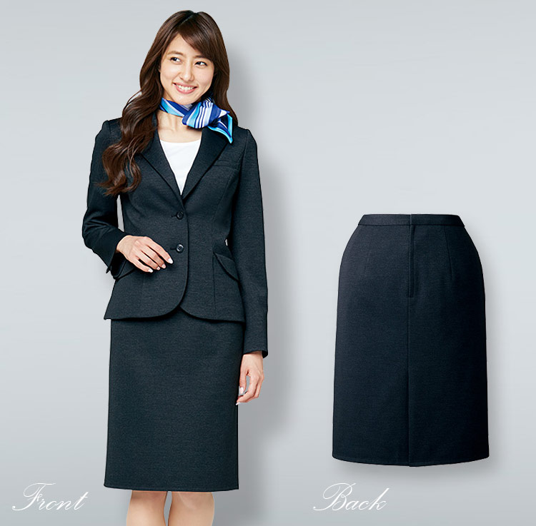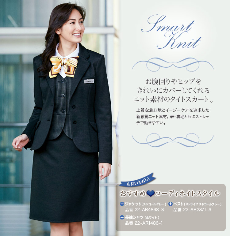 【在庫限り】[通年]<防シワ・ノーアイロン>チャコールグレーのニット素材タイトスカート(22-AR3868)