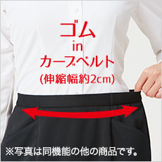見た目はすっきりなのに、窮屈さがなく動きにアジャストするゴムinカーブベルト仕様(伸縮幅は約2cm)