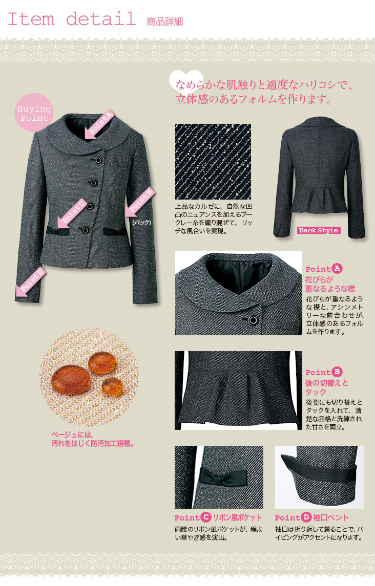 【在庫限り】[秋冬用]花びらを重ねたような衿が印象的なジャケット(22-AR4453)