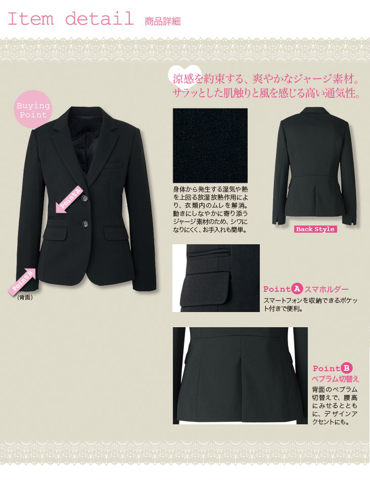 [通年]<高通気>高級感のあるジャージ素材。長め着丈のテーラード・ジャケット(22-AR4665)