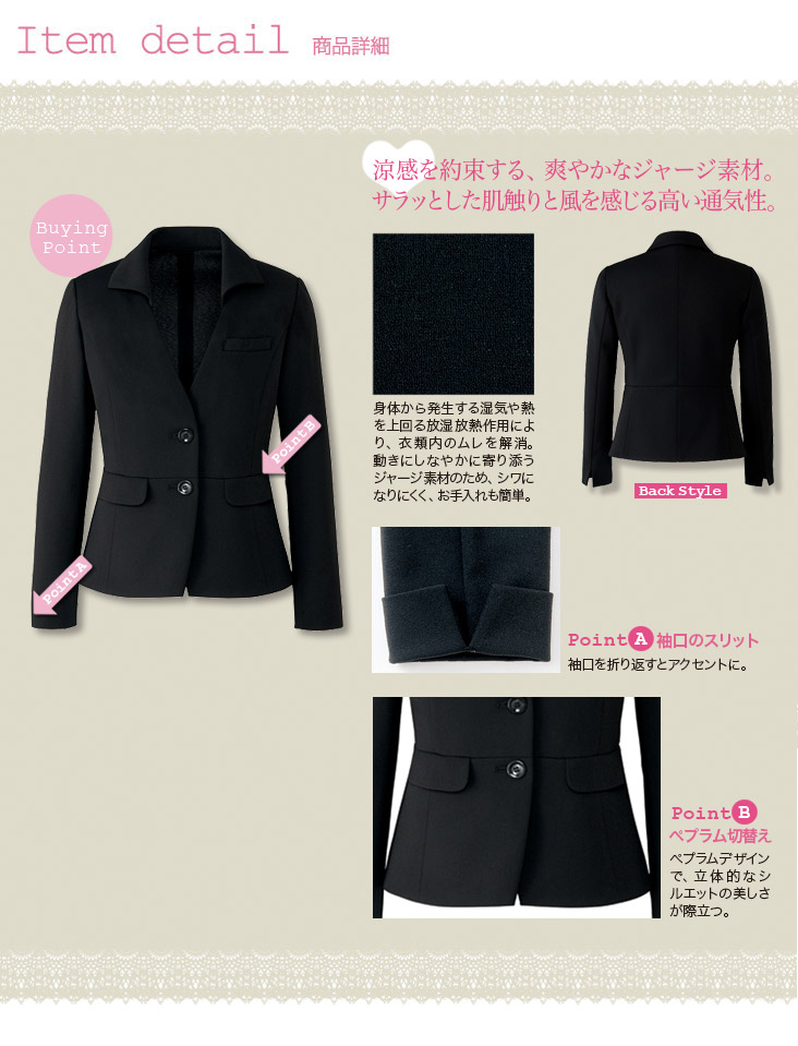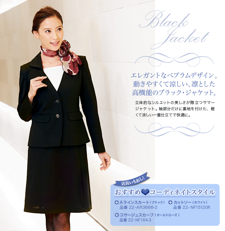 【在庫限り】[通年]<高通気>高級感のあるジャージ素材のぺプラム・ジャケット(22-AR4667)