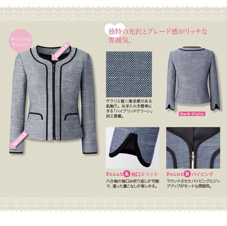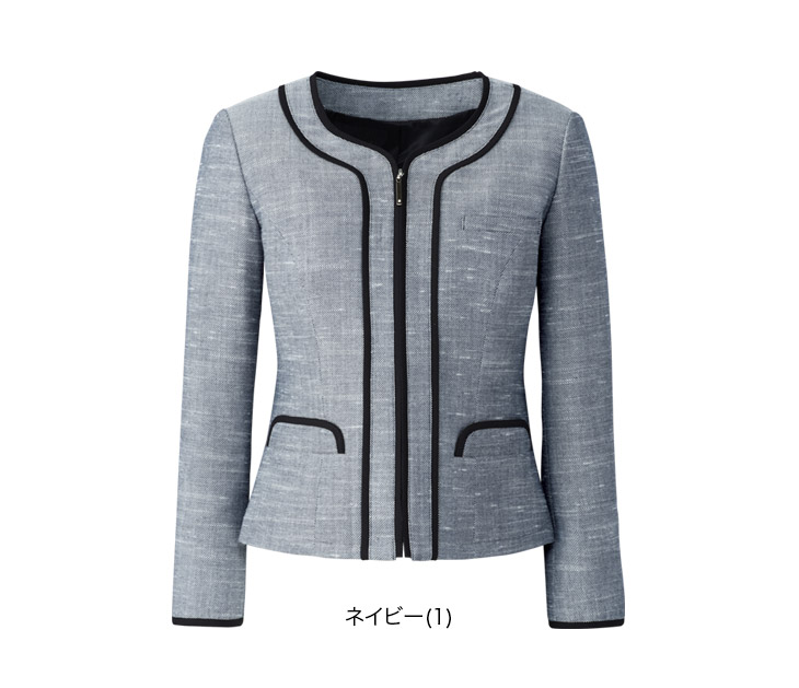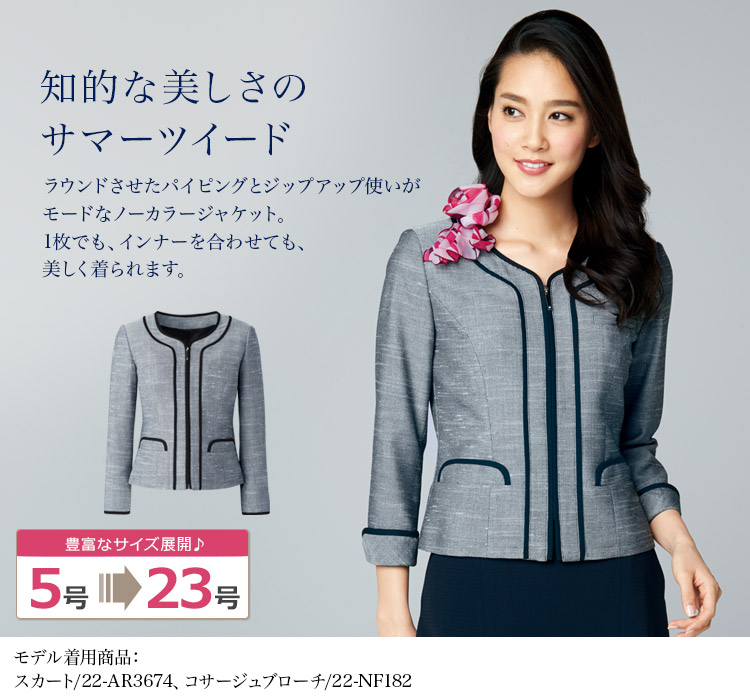 【在庫限り】[春夏用]お手入れ簡単なツイード素材のノーカラー・ジャケット(22-AR4678)