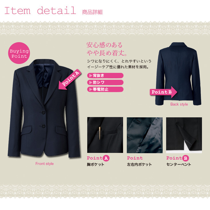 [秋冬用]<防シワ商品> 2つボタンのテーラードジャケット(22-AR4832)