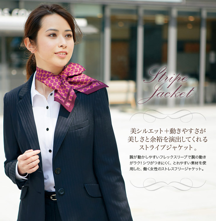 【在庫限り】[通年]<防シワ商品>美シルエット+ストレスフリーのストライプジャケット(22-AR4847)