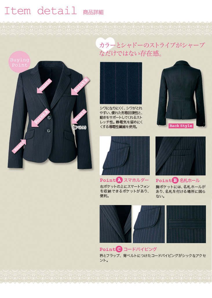 【在庫限り】[通年]<防シワ商品>美シルエット+ストレスフリーのストライプジャケット(22-AR4847)