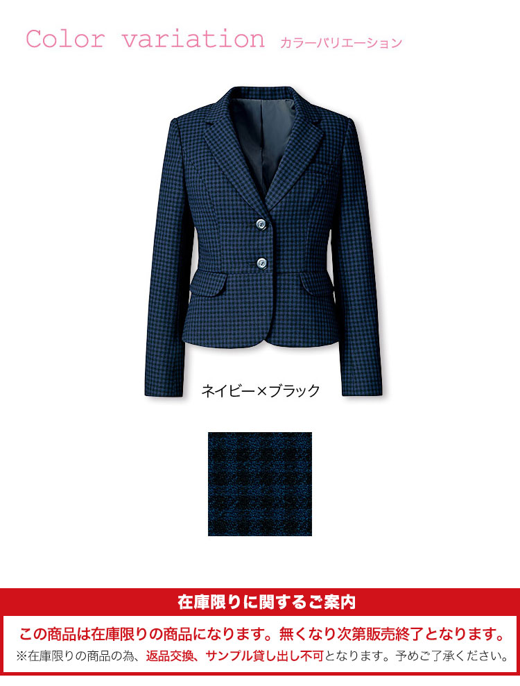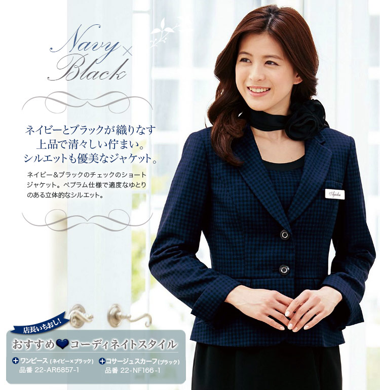 【在庫限り】[通年]ネイビー×ブラックのチェック柄。ペプラム仕様のショート丈ジャケット(22-AR4857)