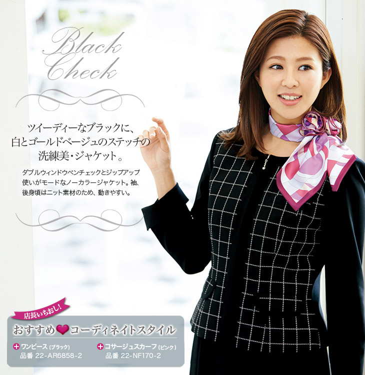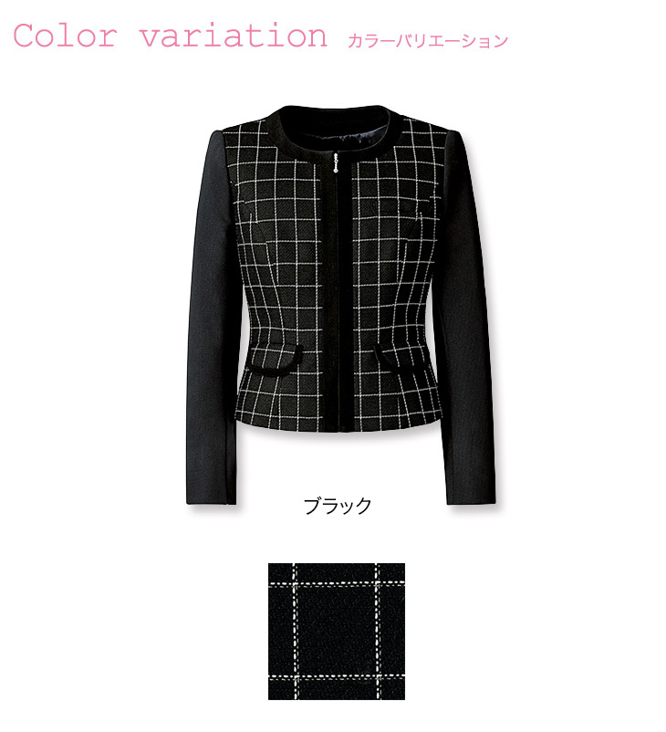 【在庫限り】[通年]<防シワ> モードなチェック柄、ジップアップ・ノーカラージャケット(22-AR4858)
