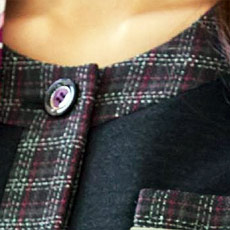 凸凹感のある組織にベリー色のチェックが華やかさを演出するウール混素材。ノーブルなチャコールグレーとの相性も抜群で、エレガントな落ち着きを感じさせます。