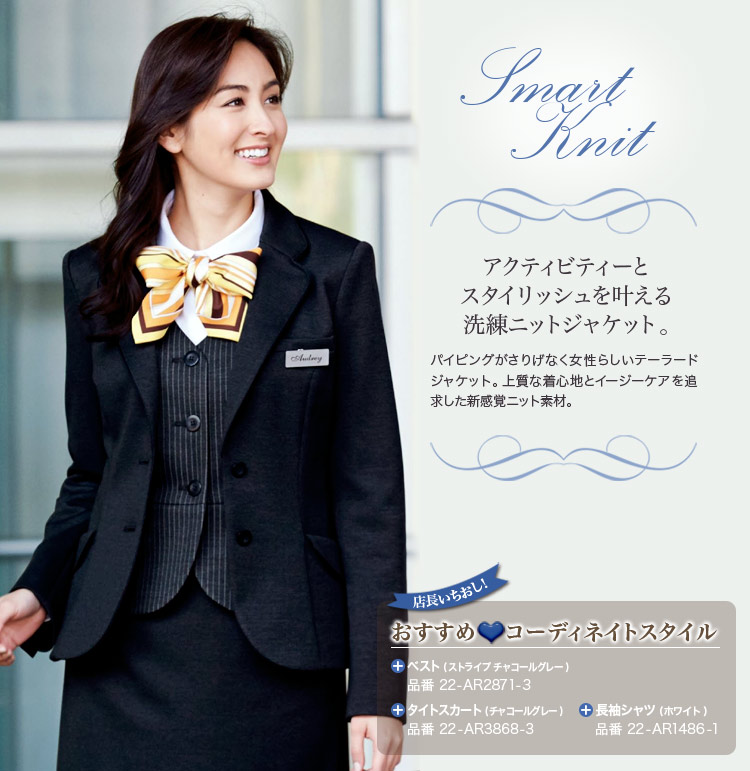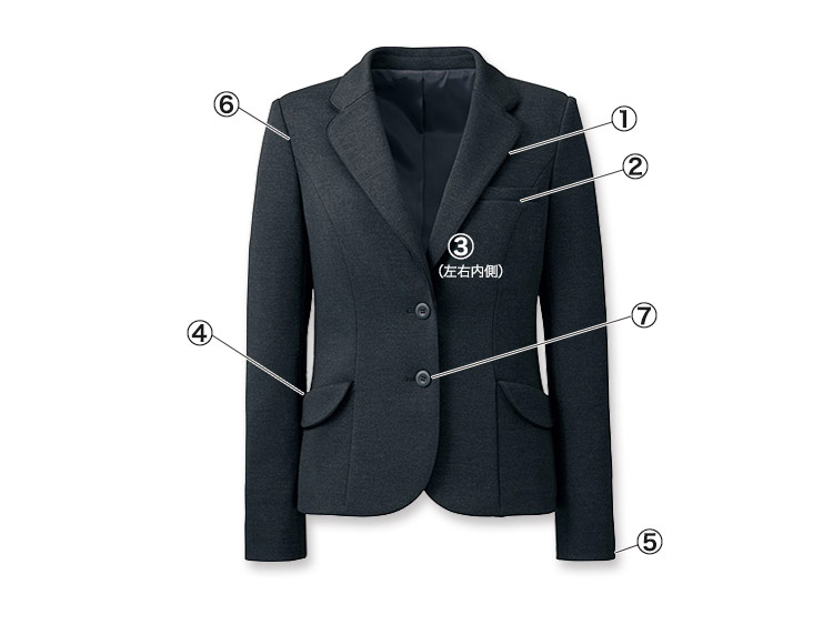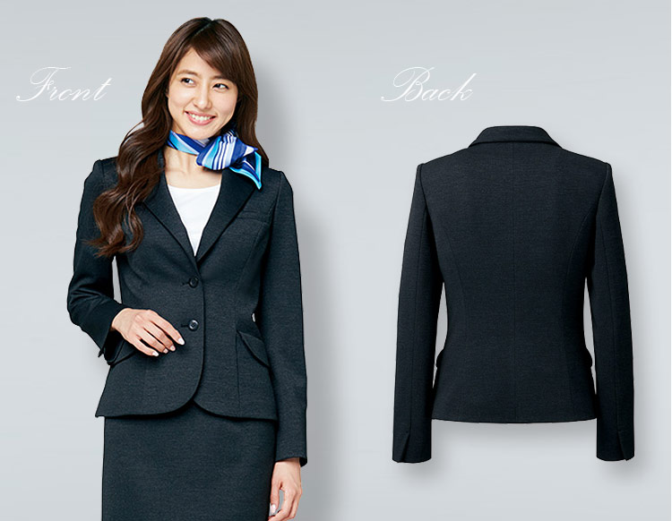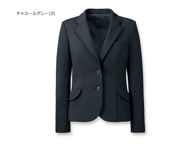 ミックス調チャコールグレーのニット素材。高いストレッチ性があり、快適な着心地を約束します。自宅でのお洗濯で美しいフォルムをキープするイージーケア性にも優れています。