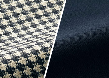 ネイビーとベージュの太さが異なる糸使いで、立体的な奥行き感を出した千鳥柄。ひときわエレガントな表情が魅力です。