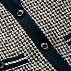 ネイビーとベージュの太さが異なる糸使いで、立体的な奥行き感を出した千鳥柄。ひときわエレガントな表情が魅力です。