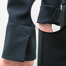 袖・後身頃をニット使いにし、快適な着心地を実現