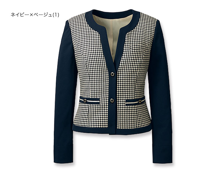【在庫限り】[通年]モード感あふれるチェック×ニットの異素材MIXジャケット(22-AR4870)