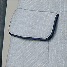 ネイビーのパイピングがきいた左右のフラップポケット。