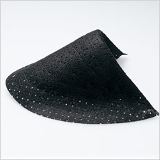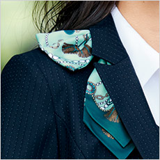 襟の内側にアクセサリーのピンを通すタブ付き。ピンによる製品へのダメージを防ぎます。