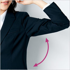 腕の上げ下げや横の動きもラクラクな、フレックスリーブⅡ。窮屈感ゼロ、着崩れ知らずで、一日中スマートに着こなせます。