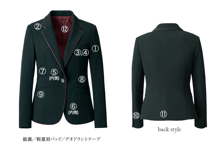 襟下にブローチ用のタブ付き。ピンによる製品へのダメージを防ぎます。