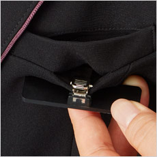 胸ポケットに、収納の邪魔にならない名札ホールも付いています。