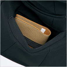 ポケット内に、ペンやハンコなどを立てて安定収納できる、ホルダーテープ付き。