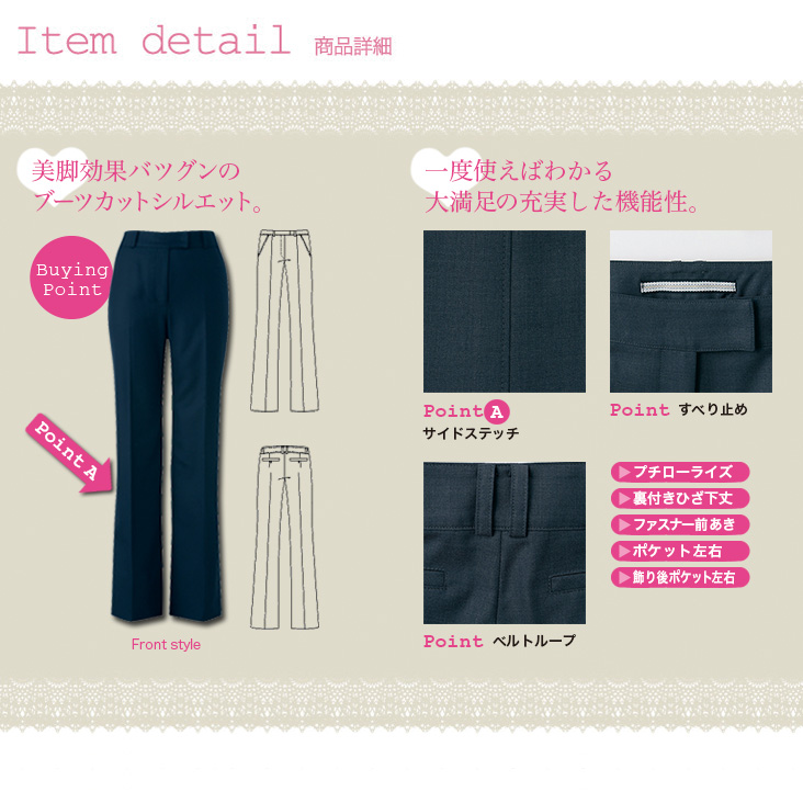 【在庫限り】[通年]ブーツカットシルエットの美脚パンツ(22-AR5808)