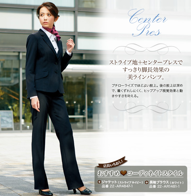 【在庫限り】[通年]<防シワ商品>ストライプ+センタープレスですっきり美ライン・パンツ(22-AR5847)