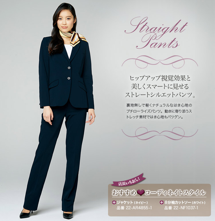 [通年]<防シワ・ノーアイロン>プチローライズのストレート・パンツ(22-AR5855)