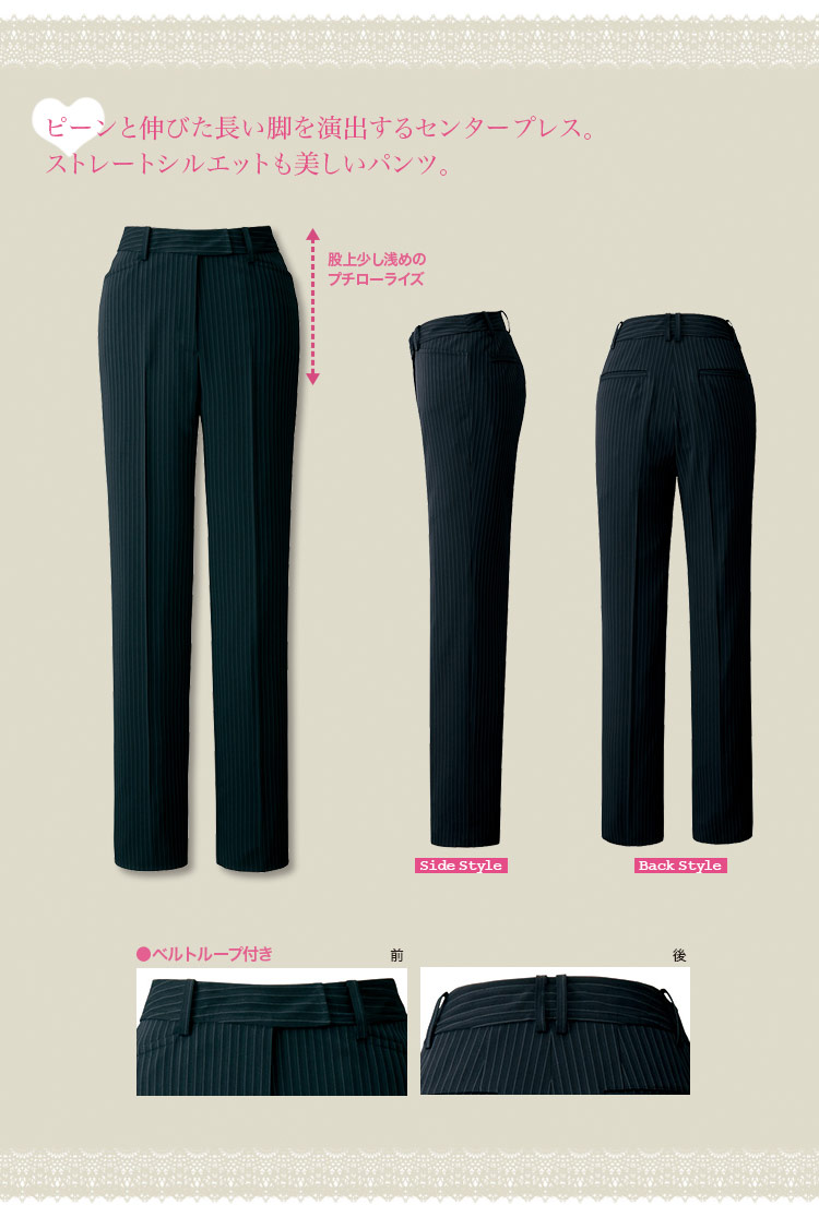 【在庫限り】[通年]すらっと脚長にカッコよく。ストライプ柄、ストレート・パンツ(22-AR5862)